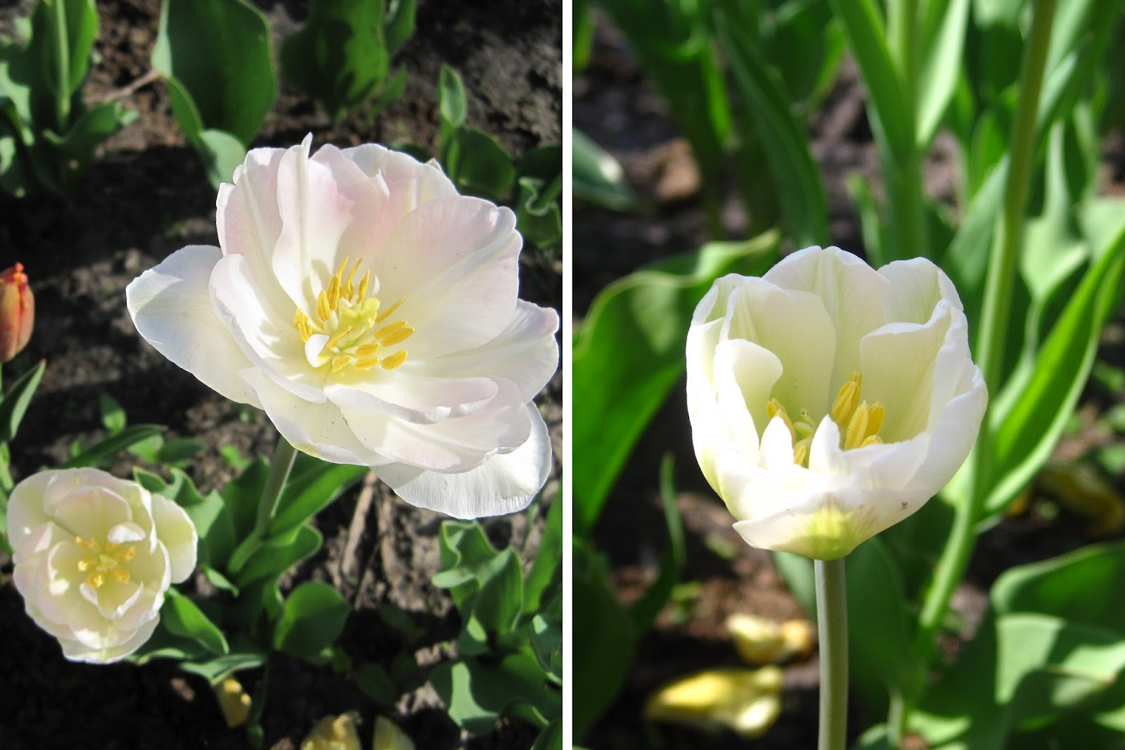 А еще в этом году уже образовалась небольшая клумбочка из тюльпанов. Половина из них у нас цвели первый раз и очень было интересно увидеть, что же мы посадили осенью :) Белые очень понравились!