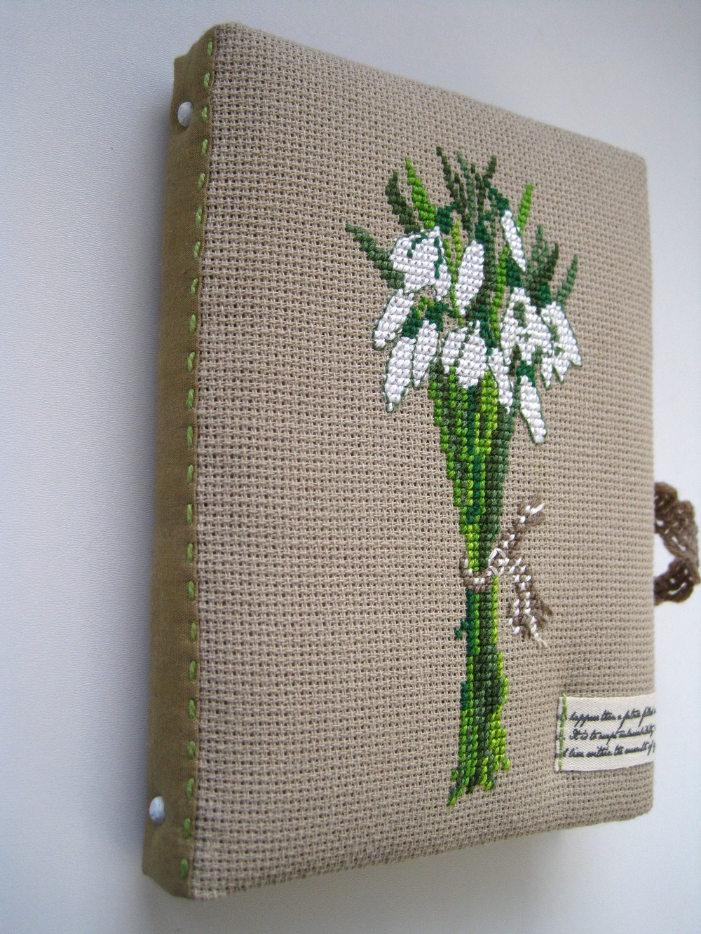 Вот такой весенний блокнотик с подснежниками. На обложке дизайн от Acufactum из книги 4082 "Verliebt in den Fruhling".