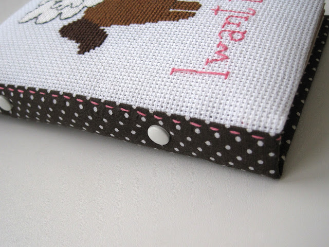 Блокнот, весь ручной работы. Формат А6, книжный переплет, 84 листа нелинованной офисной бумаги тонированной в кофе, розовый плетеный каптал, мягкая обложка за счет слоя синтепона. Корешок закреплен двумя белами брадсами. Вышивка - нитки Anchor. Использовала свою схему - очень люблю эту коняшку.