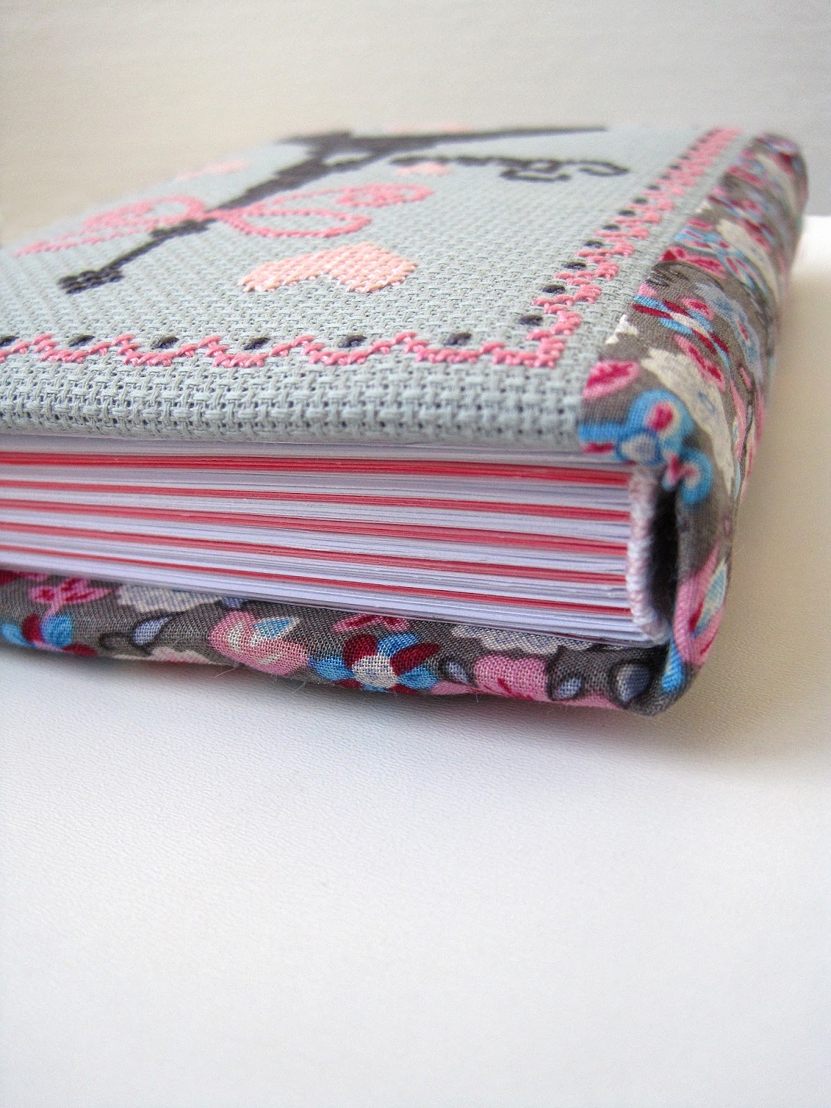 Блокнот с нуля, весь ручной работы. Книжный переплет, 102 листа розовой и белой офисной нелинованной бумаги, размер А6, плетеный каптал, мягкая обложка за счет слоя синтепона. Вышивка - фрагмент дизайна "La Parisienne" от Tralala. Нитки Anchor.