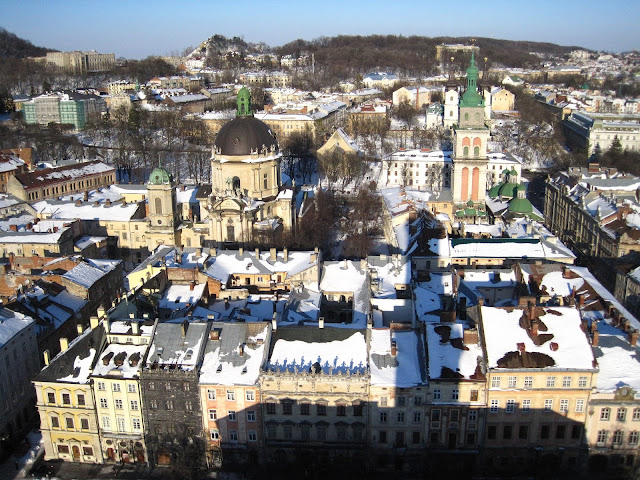 А я на прошлых выходных побывала во Львове! Это я хвастаюсь =) Пока Киев и Черкассы заметало, засыпало и морозило, я грелась на солнышке во Львове. Хотя, пока ехала туда в поезде, народ говорил об очередном штормовом предупреждении. Но его не случилось и было очень солнечно.