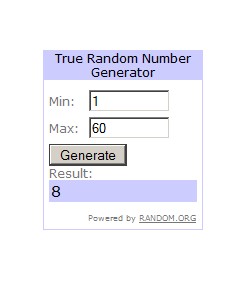 И на этой цифровой ноте перейдём к раздаче плюшек! На конфету записалось 60 желающих и, пока гуляла по вашим блогам, хотелось задарить всем и никого не обидеть. Но нужно выбрать кого-то одного :( Посмотрим что нам говорит рандом. А рандом нам говорит:
