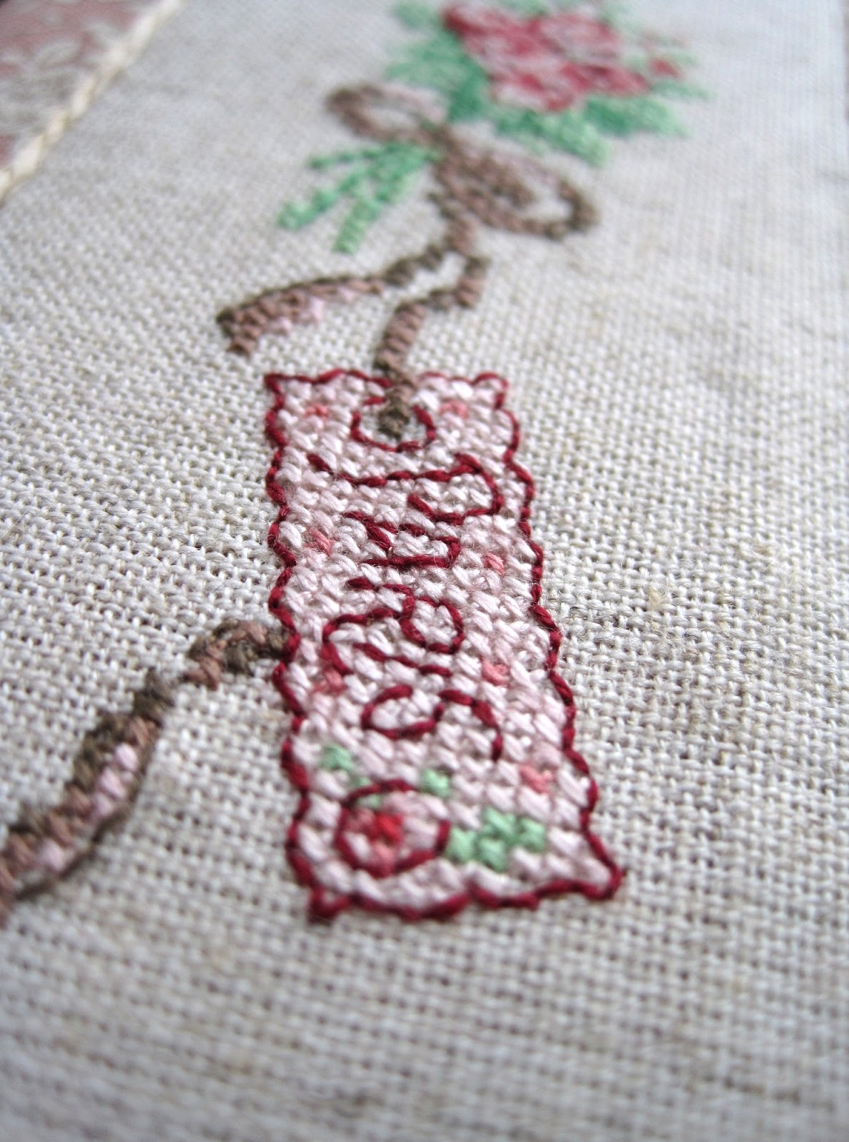 Как и предыдущие, блокнот весь ручной работы. Формат А6, книжный переплёт, 150 листов (толстенький вышел) нелинованной офисной бумаги белого, розового и зеленого цветов. Плетеный розовый каптал, на корешке красные брадсы, мягкая обложка за счет слоя синтепона. Вышивка - дизайн Veronique Enginger "a Menilmontant" из журнала Creation Point de Croix март-апрель 2012г.