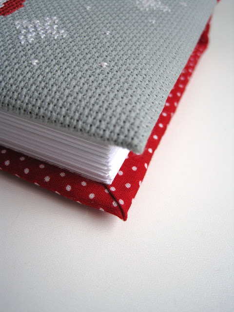 Этих птичек делала на заказ. Сюжет, красные горохи, цвет бумаги - выбирала заказчица. Все как обычно - весь вручную, формат А6, книжный переплёт, 138 листов офисной нелинованной бумаги белого цвета, плетённый каптал, полосатые форзацы, брадсины на корешке, мягкость за счет слоя синтепона. Вышивка - Helga Mandl Designs "Our Christmas Tree", нитки Anchor.