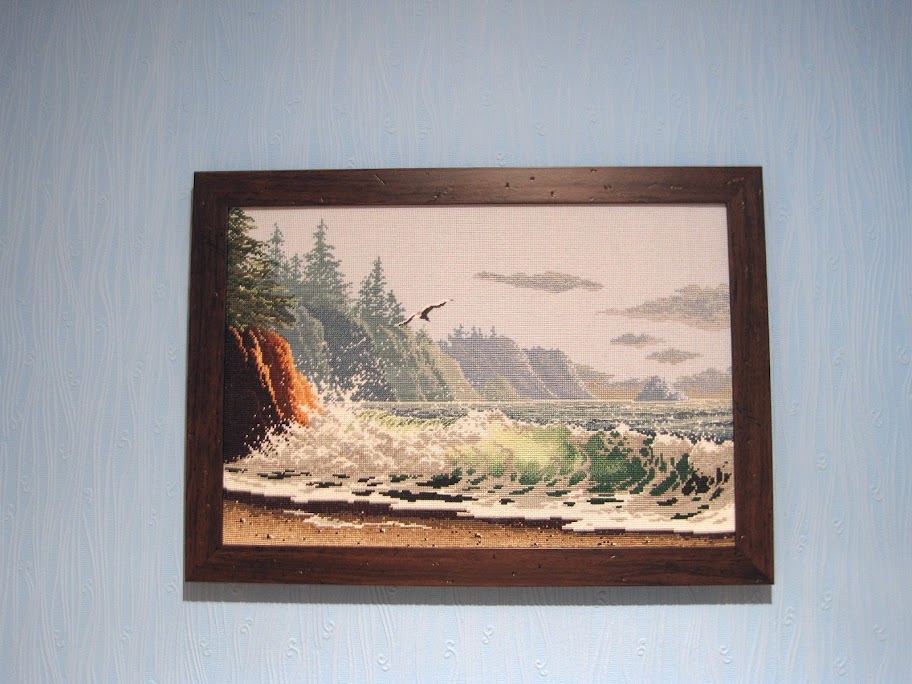Наконец-то закончила свое долгостроище. Начала вышивать эту картину сразу после эльфийки. И живенько она так у меня вышивалась, пока дело не дошло до блендов. Вроде и ничего особенного, а не лежала к ним душа и все. Но надо же доводить начатое дело до конца. И для дополнительного стимула записалась в совместный отшив долгостроев на форуме Nostromo - в компании все ж веселей :) Больше всего в этой картине мне нравится цвет волны, просвечиваемой солнцем.