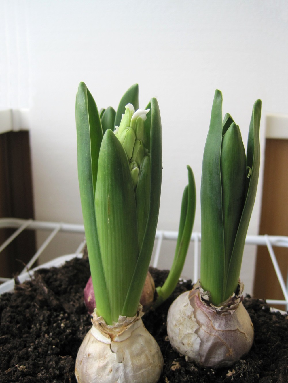 Попробовала самостоятельно вырастить цветы гиацинта. Взяла луковички трех разных цветов - синий, персиковый и белый. Первых два синхронно так выпустили соцветия, зацвели и отцвели уже, а белый еще только-только начал показывать цветочки. Интересно, такая луковичка попалась или особенность сорта?