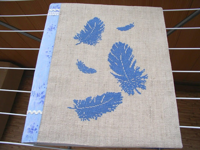 Давно хотела куда-то пристроить эти перышки. Правда никаким образом они не намекают что в папке находится =) Их синий цвет обусловлен цветовой гаммой используемой ткани. Получились такие себе перышки птицы счастья =)