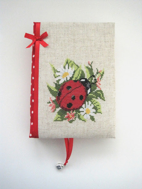 Этот блокнот я делала на заказ, в подарок. Главным условием было - божья коровка на обложке :). Совместными усилиями выбрали понравившуюся картинку и вот результат: